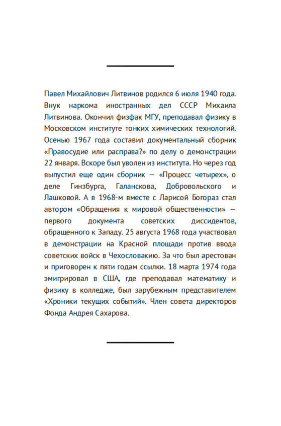 Я, повторюсь, никогда не ощущала себя правозащитником. Может быть, потому что я никогда ничего не возглавляла. Я всегда помогала. Надо было помочь и помогала. Никто ведь не ждал, когда тебя попросят о помощи. Важно было успеть броситься и помочь, когда ты видел, что это нужно. И это считалось за честь. Анатолий Марченко, например, он замечательный человек был, удивительный просто, из редчайших. Он тоже никогда себя никаким правозащитником не считал. Я уверена в этом. Он написал свою первую книгу о лагере. Разве он писал ее как правозащитник? Нет, он писал ее как свидетель. Он был свидетелем. Он просто выражал свои внутренние ощущения и свою точку зрения на все происходящее, чтобы противопоставить правду официальной пропаганде, которая шла без конца и внутрь страны, и на Запад. На этом ведь все и было основано, все для этого и делалось, ради правды. Зачем Гинзбург составил «Белую книгу» и передал ее на Запад? Затем, что отчеты и освещение этого процесса были до такой степени фальшивые, что невозможно было это терпеть. Но и просто сказать: «Нет, это неправда» тоже нельзя. Тогда покажи, где правда. Вот мы и показывали. И вся «Хроника» («Хроника текущих событий») на этом строилась.