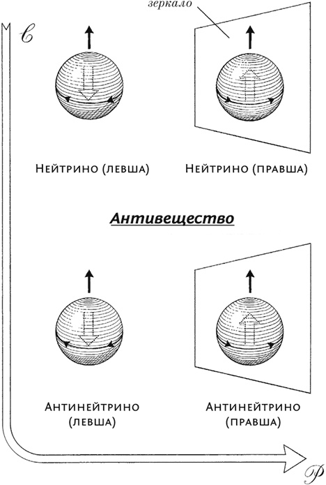 В антивеществе все ровно наоборот. Антинейтрино, получающиеся в результате распада частиц, будут вращаться против часовой стрелки. Видимо, вещество и антивещество понимают разницу между правым и левым в сущности, это единственное важное различие между ними. Как вы и то лицо, которое вы видите в зеркале по утрам ну, примерно.