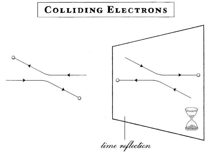 С другой стороны, интуиция столько раз нас обманывала. Когда мы говорим о симметрии вселенной, то имеем в виду не преобразование вселенной в целом, а преобразование ее законов. Вот, мол, посмотрим на игру в мяч или на одну-единственную пару электронов, отскочивших друг от дружки, и их и обратим, а больше ничего трогать не станем.