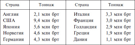 МОРСКИЕ ИНТЕРЕСЫ ВОЮЮЩИХ СТОРОНК началу войны общий тоннаж торгового флота в мире составлял 68 млн брутто-регистровых тонн (брт) и его основная часть распределялась следующим образом: