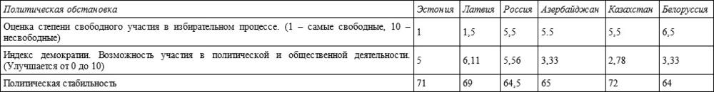 В рейтинге, составленном еще в 2009 г. аналитической группой Всемирного экономического форума (ВЭФ), по глобальной конкурентоспособности среди 133 стран мира Азербайджан находится впереди всех постсоветских стран на 51-м месте. Литва на 53-м, далее идут Россия 63-е, Казахстан 67-е, Украина 82-е, Грузия 90-е, Армения 97-е. Иордания (50-е) и Турция (61-е) лучше России, а Египет (70-е) опережает Украину. Рейтинг составлен с учетом 12 показателей конкурентоспособности страны.