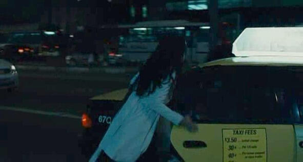 Пассажир (Том Круз) договаривается с водителем такси, чтобы тот его подождал.