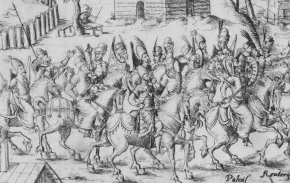 Конныя воіны Польшчы і ВКЛ у прадмесці Гродна. Панарама Адэльгаузера-Цюндта, 1568 год.