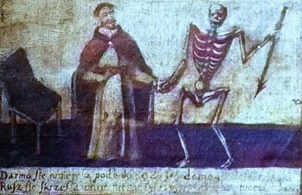 Сенатар і Смерць. Фрагмент палатна «Танец Смерці», манастыр брыгітак у Гродне, XVIIXVIII ст.