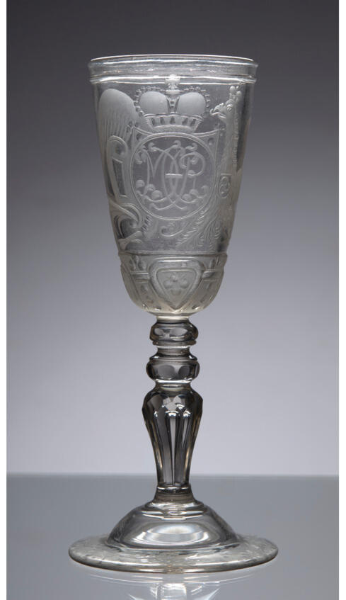 Келіх з гербавым арлом Радзівілаў, які, як мяркуецца, належаў Міхалу Радзівілу Рыбаньку. Нацыянальны музей у Кракаве.