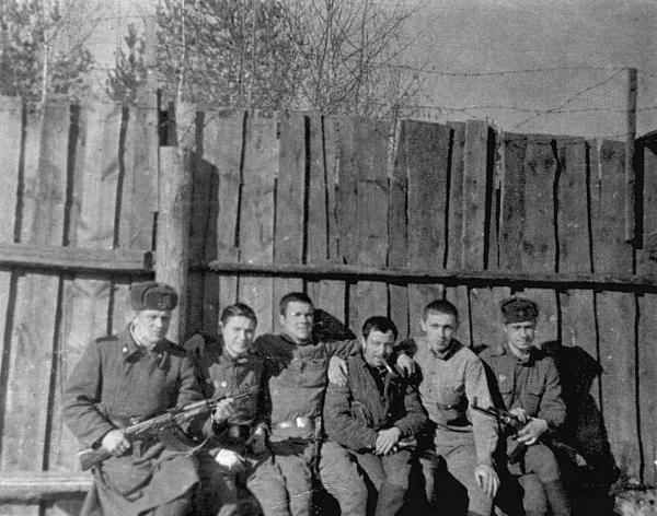 1967 г., армия, гарнизонная гауптвахта. Автор в качестве заключенного (в центре, с мундштуком)