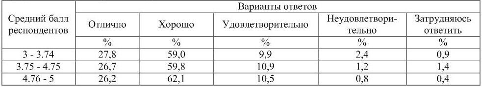 Таблица 1.4 Оценка организации учебного процесса выпускниками (% от числа ответивших в группе) в зависимости от среднего балла респондентов