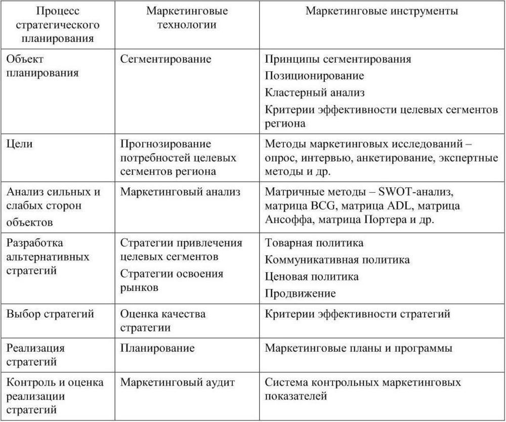 Таблица 4 Технологии и инструменты маркетинга в стратегическом региональном планировании