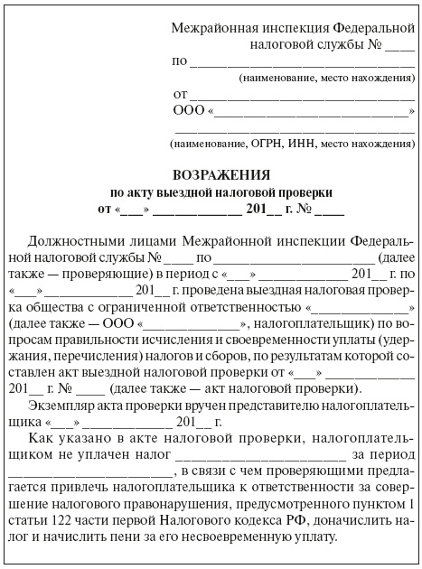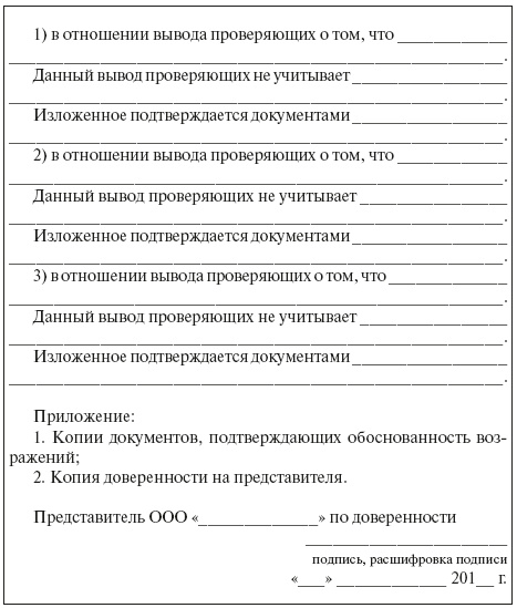 Примерная форма дополнения к письменным возражениям по акту налоговой проверки.