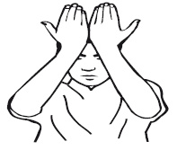 Затем, прикасаясь ладонями обеих рук к верхней части лба, перпендикулярно бровям совершаем обтирание сверху вниз до уровня переносицы.