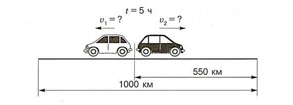 а. Из одной деревни в противоположных направлениях выехали одновременно два автомобиля. Через 5 ч расстояние между ними стало равным 1000 км, из которых 55% проехал второй автомобиль. Найдите скорость каждого автомобиля.