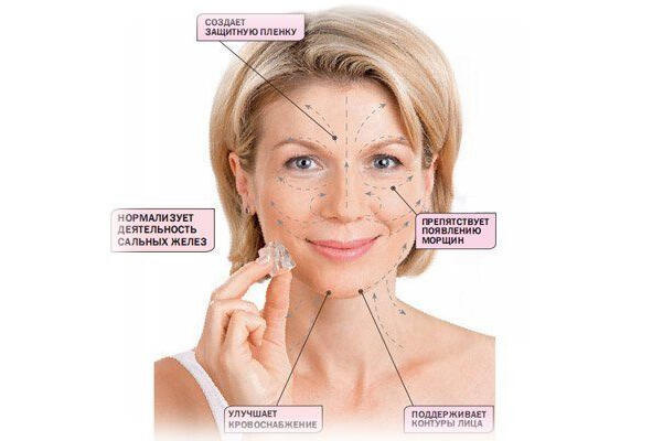 Главная задача льда борьба с морщинами. Он хорошо тонизирует, снимает усталость и раздражение.