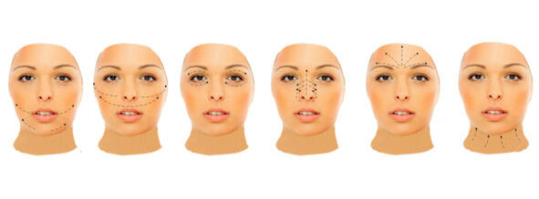 Легкими скользящими движениями по направлению кожных линий обильно смазывают кожу лица, шеи, затем немного похлопывая кончиками пальцев передвигаются по массажным линиям