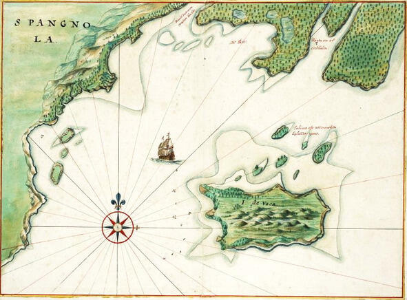 «Мы остановились в открытом море ночью 28-го, сообщает де Кюсси, и на следующий день, бросив якорь недалеко от берега, я отправился к жилищам, где застал сьёра Лорана де Граффа вместе со многими флибустьерами, которые начали располагаться возле него с оружием в руках. Обнаружив, что у него здесь не осталось даже половины тех людей, которые были приписаны к их кораблям, я поинтересовался, что же с ними случилось и куда подевались их корабли. На это он ответствовал, что небольшое английское судно водоизмещением от 55 до 60 тонн разбилось десять дней тому назад близ Саоны небольшого острова, лежащего в наветренной стороне от города Санто-Доминго; экипаж, насчитывавший восемь мужчин и одного мальчика, спасся на маленькой шлюпке, которую они снабдили планширем, чтобы можно было дольше продержаться в море, и через четыре дня дошли до острова Ваш, где уведомили сьёра Лорана о том месте, где было потеряно их судно, а также о том, что оно было нагружено говядиной, свиным салом, мукой и пивом После этого сообщения, которое мне подтвердил тот английский экипаж, сьёр Лоран отправил свой самый большой корабль с примерно 70 людьми на поиски упомянутого потерянного судна, а также для нападения на некий бискайский фрегат, вышедший из Санто-Доминго с 18 пушками и 80 людьми».