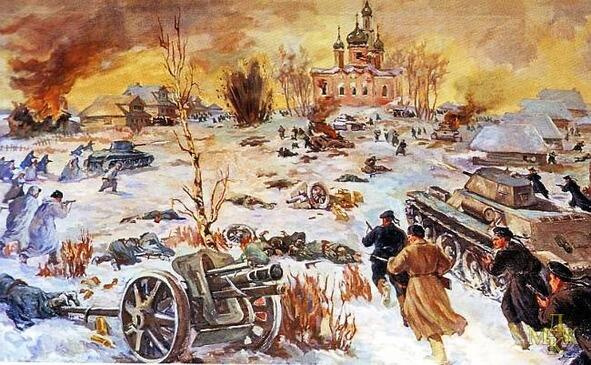 Разгром отрядом морской пехоты немецких захватчиков в селе Белый Раст под Москвой. Декабрь 1941 года