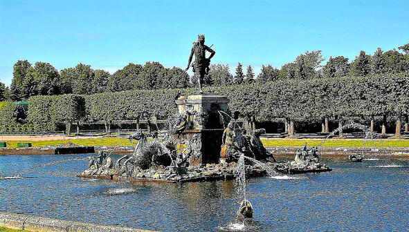Для того, чтобы познакомиться с уникальным историческим фонтаном необходимо подняться на террасу перед Большим каскадом и пройти в Верхний сад Большого Петергофского дворца. Там установлен шедевр немецкого искусства XVII столетия скульптурная композиция «Нептун». Этот фонтан можно отнести к лучшим образцам монументалистки из числа построенных за последние триста с лишним лет.