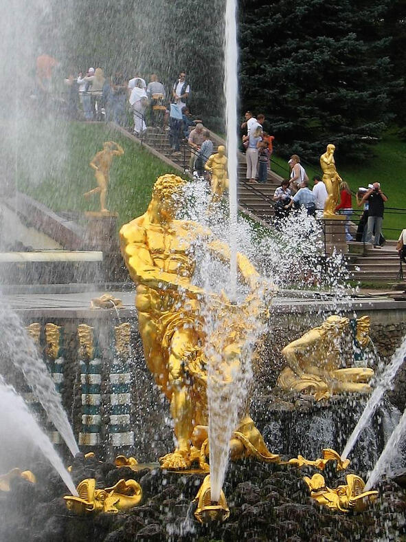 В своей книге «Описание Петергофа» знаток города Александр Фёдорович Гейрот отмечал: «Описав главные фонтаны перед дворцом, необходимо добавить, что главный эффект этих фонтанов заключается в одновременном их действии».