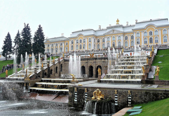 Всего в Петергофе работает 189 фонтанов и три каскада (Большой каскад Петергофского дворца состоит из трёх частей). Главное украшение Петергофа фонтаны Нижнего парка. Первое место там занимает каскад «Большой», сооруженный архитектором Жаном Батистом Леблоном на склоне естественной 16-метровой террасы. Об этом французском архитекторе основатель Петергофа царь Пётр I сказал: «Cей мастер из лучших и прямо диковинкою есть».