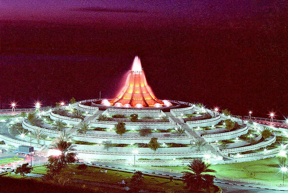 После замечательных средневековых фонтанов мусульманской Турции обратим свой взор на современное водомётное строительство в других странах региона. Очевидно, что нынешние знаменитые фонтаны в Эмиратах, Пакистане или Саудовской Аравии своёй архитектурой мало связаны с исламской традицией, они, скорее воплощаю в себе мировой опыт и западные технические достижения в этой сфере. Нефтяные деньги позволяют строить государствам Персидского залива неповторимые водные комплексы, ставшие гордостью современной инженерной и архитектурной мысли. Первый наш рассказ о фонтанах Объёдиненных Арабских Эмиратов.
