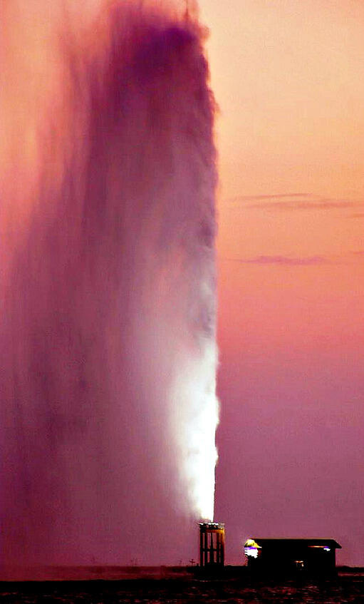 Ещё одним представителем фонтанов типа «гейзер» является водомёт, расположенный в порту экономической столицы Пакистана городе Карачи.