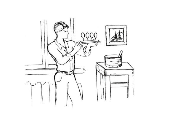 Перелистав несколько альбомов по декоративно-прикладному творчеству, Сергей так и не смог выбрать то направление, тот стиль, которому соответствовало его настроение, его собственный эстетический вкус. То, что нравилось было слишком сложно. Простые росписи казались аляповатыми. «Как прав отец, когда говорил, что надо искать свой путь» размышлял Сергей. «Простая вроде бы работа кусок дерева, капля лака и три мазка кистью, а вот не даётся» Перепробовав темперу, гуашь и масло, Сергей для работы выбрал всё-таки масло.