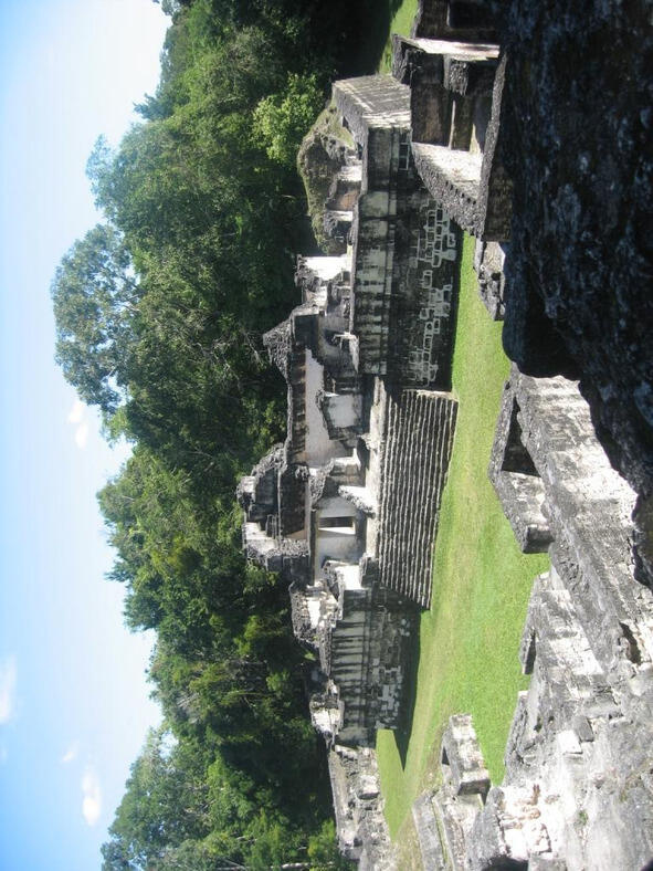 Где же пирамиды? Словно для того, чтобы подразнить нас, Фернандо повел нас дальней дорогой. Первым нам попадается бывший дворец. Предназначение дворцов в Тикале не ясно. Это могли быть и административные, и жилые здания для знати. Я подхожу к стенам. Здание покрылось кое-где мхом. Можно легко поскользнуться на ступеньках и покатых поверхностях. Ступенек обычно немного: они ведут от уровня земли ко входу в каменную комнату размером 45 квадратных метров. В одной обнаруживается каменное поднятие на уровне пояса: здесь спал какой-нибудь майя. В другой два поднятия, одно напротив другого. Здесь, по словам Фернандо, два майя садились друг против друга и обсуждали вопросы политики и философии. Дворец имеет П-образную форму. При нем поляна. Молодая пара безуспешно пытается здесь, в тени руин, уединиться.