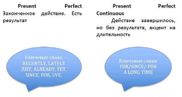 Главное различие времен Present Perfect и Present Perfect Continuous состоит в том, что Present Perfect используется, когда мы говорим о результате, а Present Perfect Continuous когда хотим подчеркнуть длительность какого-либо процесса или ситуации.