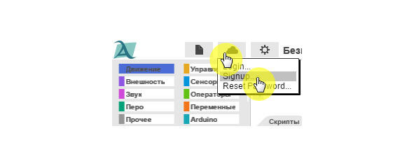 При загрузке нового проекта Snap4Arduino не предлагает сохранять текущий проект! Помните об этом, и сохраняйте проект как можно чаще.