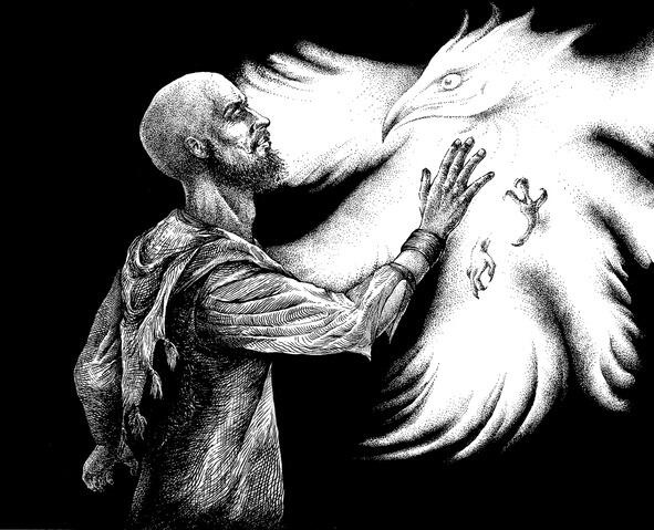 Все, что она могла разглядеть очертания светящегося белого шара, от которого мало-помалу начали отделяться несколько лучей. С тем, как эти странные отростки приобретали очертания, свечение тускнело, хотя все же продолжало нещадно бить по глазам. Светлое облако вытянуло шею, пару ног, длинный светящийся хвост, похожий на павлиний, и, наконец, четыре остроконечных, нежно подрагивающих крыла. Свет, или Дух, или Нечто двигалось к старому пирату, для виду поводя иногда крыльями по воздуху, звенящему от тишины и изумления присутствующих. И лишь Стормара, единственный, чьи глаза безболезненно могли любоваться тем, кого он пожалел и освободил, не отпрянул и не выглядел испуганным. С самой спокойной улыбкой на разглаженном, красивом лице он вытянул руку к Духу, а тот медленно тянулся вытянутой головой к его руке в безмолвном приветствии.