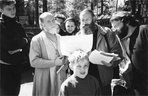 В. П. Филимонов знакомит протоиерея Алексия Коровина с новыми архивными материалами.