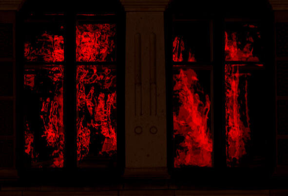 Проходя мимо костела увидел в его окнах мелькнувшее яркокрасное пламя. Шаг назад пламени нет. Шаг вперед просто цветовая мешанина. Леша заинтересовался моими шатаниями слишком большими для пары бокалов пива, которые мы успели принять.