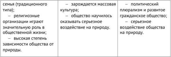 Для того чтобы выделить верные ответы в тестовой части и (или) дать характеристику того или иного типа общества во второй, вам необходимо просто понять и запомнить признаки каждого из этих типов, но сначала внимательно прочтите их в таблице, приведенной ниже.