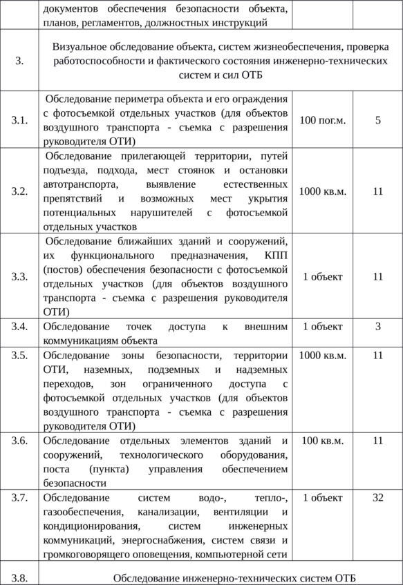 визуальное обследование объекта, систем жизнеобеспечения, проверка работоспособности и фактического состояния инженерно-технических систем и сил обеспечения безопасности;