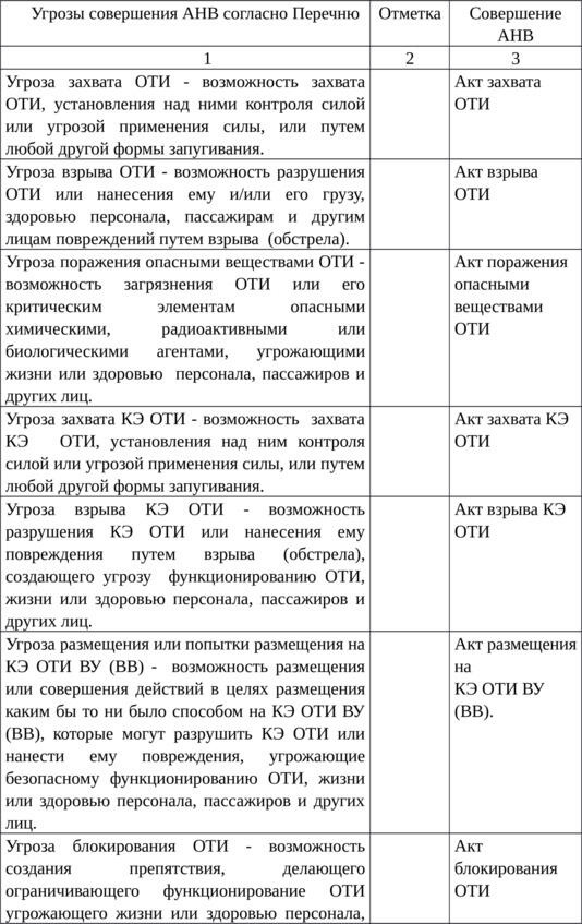 Сведения об угрозе совершения АНВ в деятельность ОТИ