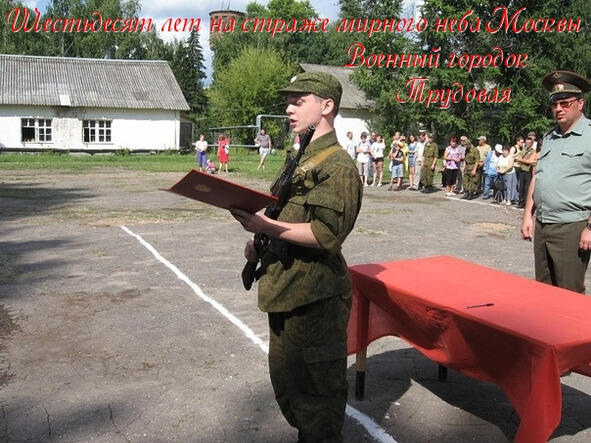 ВЕСОМЫЙ ВКЛАД В ОБЕСПЕЧЕНИИ ЗАЩИТЫ МИРНОГО НЕБА МОСКОВСКОГО РЕГИОНА ВНЕСЛИ ДИСЛОЦИРОВАННЫЕ РАНЕЕ В ГАРНИЗОНЕ ТРУДОВАЯ: войсковая часть 32163 (338 зенитный ракетный полк), войсковая часть 03251 (2145 передвижная ремонтная техническая база (ПРТБ), войсковая часть 62056 (4174-я база измерительной техники), 197 военная школа поваров, войсковая часть 20007 из состава 3-й Армии РКО, 843 Военторг (в дальнейшем 4613 ДГУП), войсковая часть 83513 54 промышленный комбинат Министерства обороны.