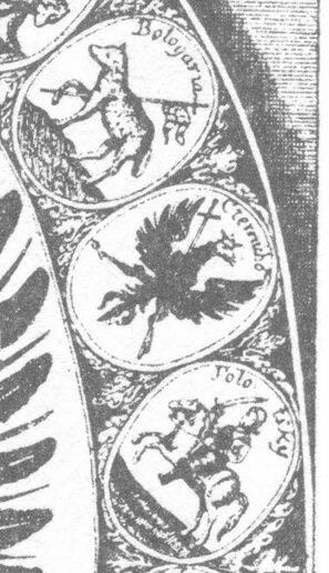 По традиции в Титулярнике активно дополняли гербы религиозной символикой вот и черниговскому орлу вручили крест, который он сжимает левой лапой.