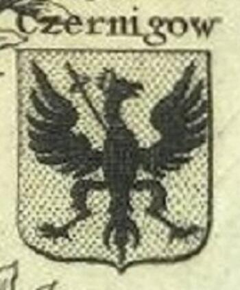 Есть две основные версии, почему символом Черниговского воеводства стал двуглавый орел. Одни исследователи доказывают, что двуглавый орел является древним символом черниговской земли: известно изображение двуглавого орла на турьем роге, найденном при раскопках кургана Черная Могила, двуглавые орлы изображались также на стенах Борисоглебского собора в Чернигове. Другие считают, что все гораздо проще двуглавый орел был выбран поляками для герба отобранной у Москвы земли исключительно для того, чтобы подразнить московского самодержца.