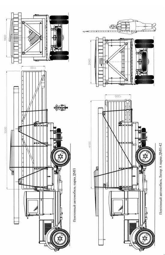 Из парка ДМП предусматривалась наводка мостов грузоподъемностью 16 и 30 т, а также сборка 9, 16 и 30 т перевозных паромов. Материальная часть парка перевозилась на необорудованных автомобилях ЗиС-5, однако перевозка сопровождалась значительными трудностями из-за значительной длины понтонов.