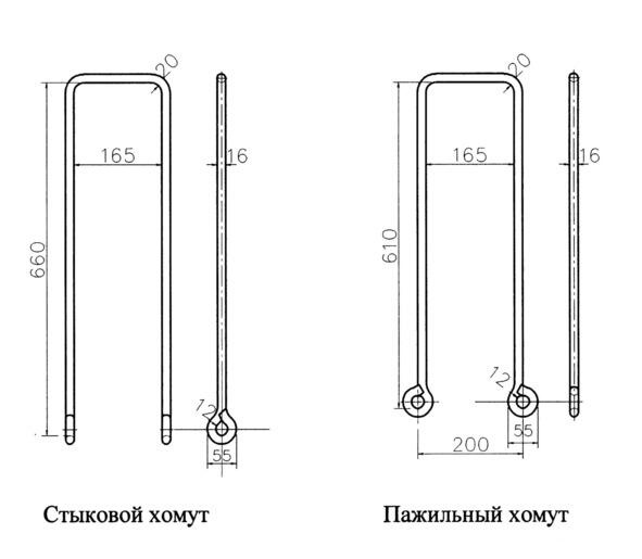 Для смыкания смежных прогонов и образования жесткого стыка использовались боковые ригели. Промежуточные ригели были дополнением к стыковым и служили для жесткого стыка между паромами. Для их крепления применялись стыковые хомуты, пажильные и промежуточные хомуты