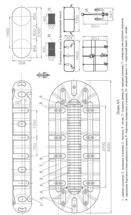 В комплект лодки входило: лодка; чехол для лодки; складное днище; 4 меха; 4 шланга и сумка с запасными частями и починочным материалом. Общий вес комплекта составлял 177 кг.