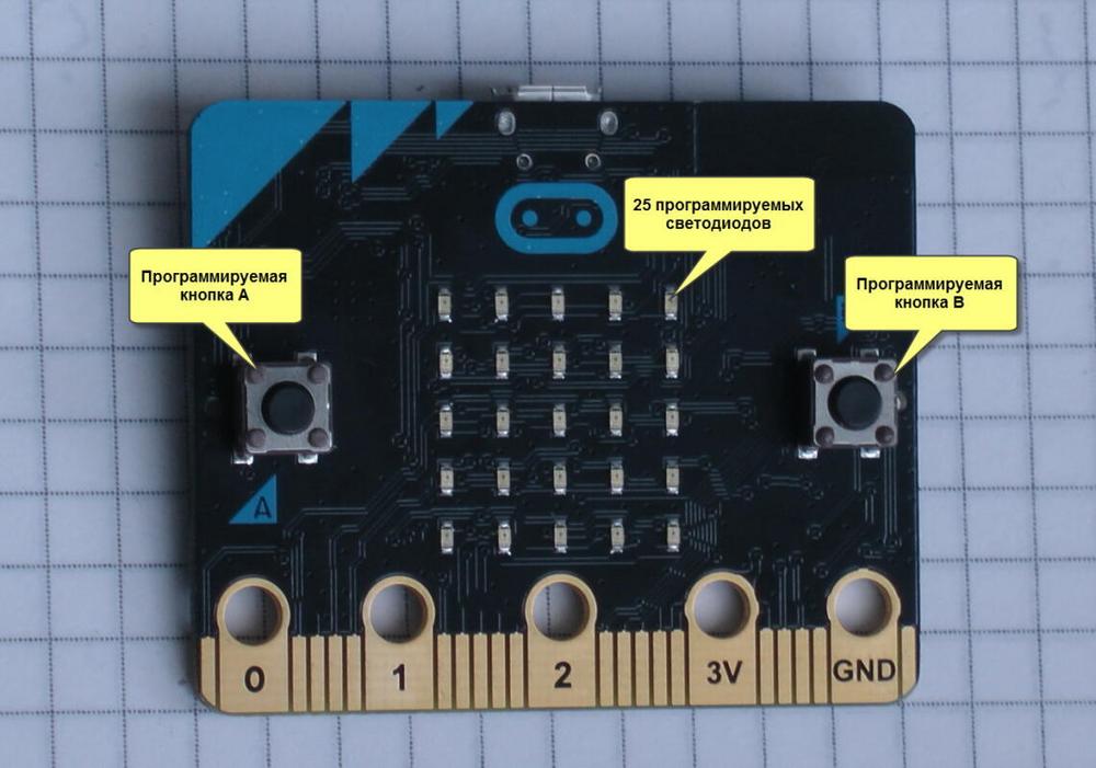 Рис. 3.3. Программируемые кнопкиAиBна лицевой стороне платыmicro:bit