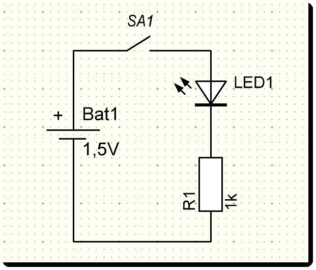 На рис. 3.1 мы добавили обычную кнопку SA1 в схему подключения светодиода к батарейке. Если нажать кнопку, светодиод загорится, если отпустить погаснет.