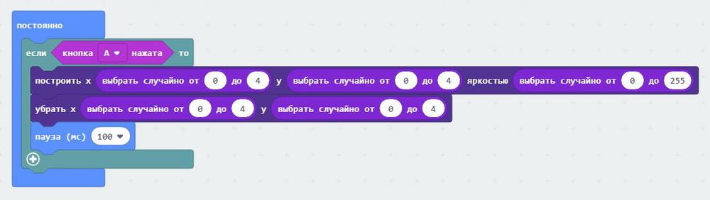Давайте усложним нашу программу. Пусть теперь звезды зажигаются и гаснут, если кнопка A не нажата, и перестают зажигаться и гаснуть, когда мы нажимаем кнопка A.