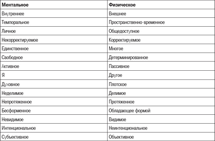 На основании анализа литературы автор выделяет следующие признаки ментального и физического (табл. 3).