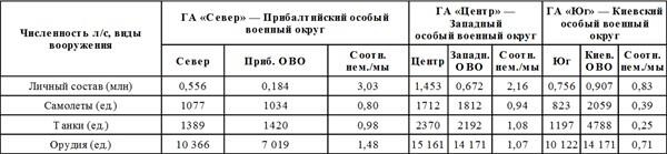 Соотношение сил немецких групп армий и советских военных округов представлено в таблице 1: