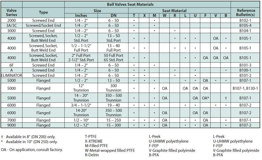 Табл. 1. Материалы для полимерных седел шаровых кранов компании Jamesbury
