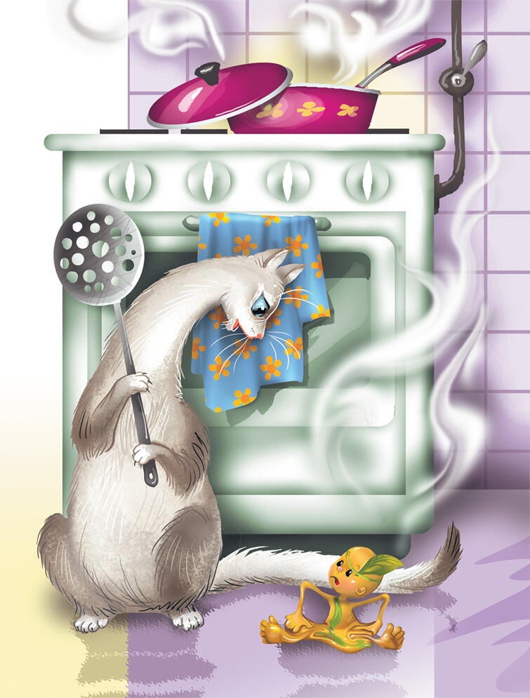 А Гевей приступил к выполнению второй части плана. Прилипая ладошками к эмали плиты, он добрался до сковородки и начал поднимать тяжёлую крышку. Но тут случилось неожиданное. Гевейчик вдруг превратился в бесформенную массу и повалился вниз. Только через некоторое время он опять пришёл в себя. То есть выбрался из массы всё тем же Гевейчиком.