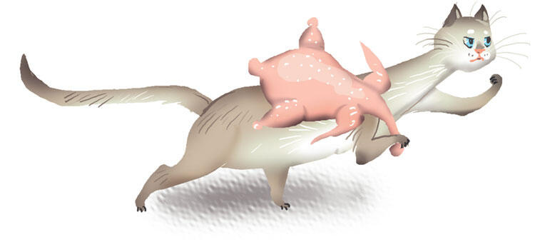 Аська схватила маленького курёнка, который лежал там на блюдце, и скрылась за диваном.