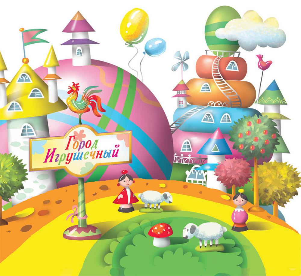 Они пошли дальше и снова увидели щит, на котором было написано: «Город Игрушечный».
