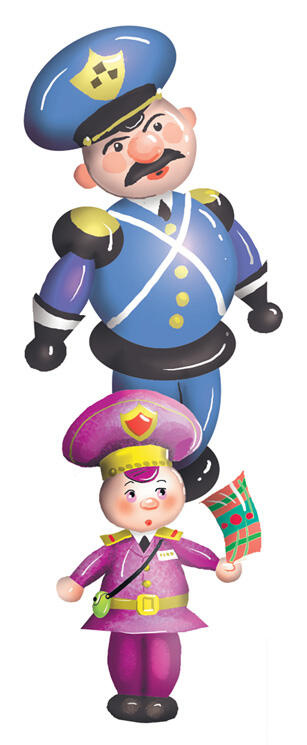К ним сразу подошли два полицейских. Один был игрушечный, но очень большой и строгий. Другой был поменьше и не такой строгий.